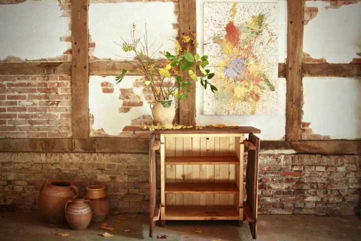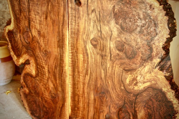 Hier in unserer Gegend wuchs dieser sehr große Nussbaum mit seiner imposanten Baumkante. Als kontrast haben wir den Korpus aus ganz hellen Ahornholz angefertigt. Ein absolutes Unikat! Breite 120cm, Höhe 95cm, Tiefe 45cm. Verkauft!