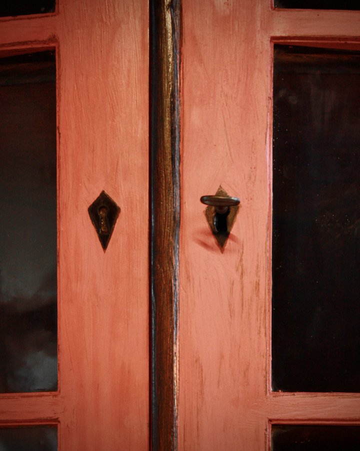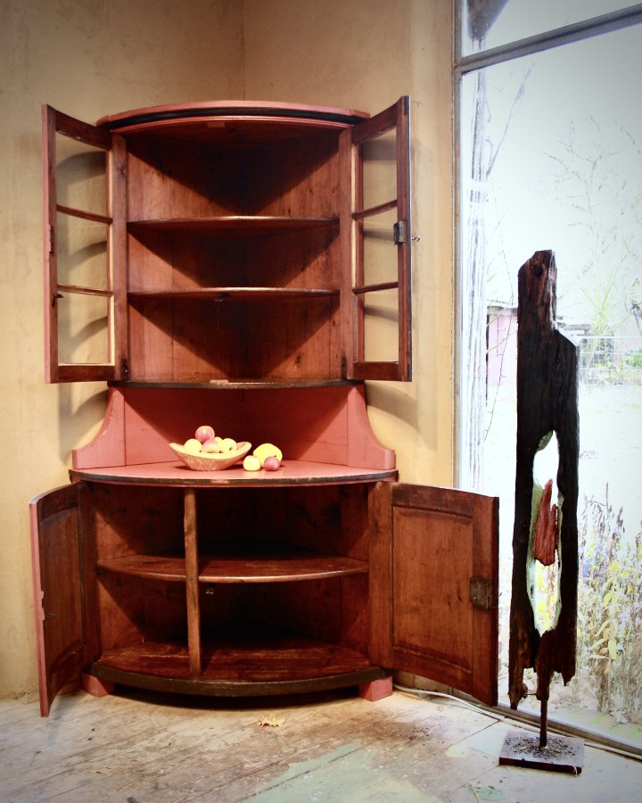 Rot gefasster Eckschrank aus der Biedermeierzeit
